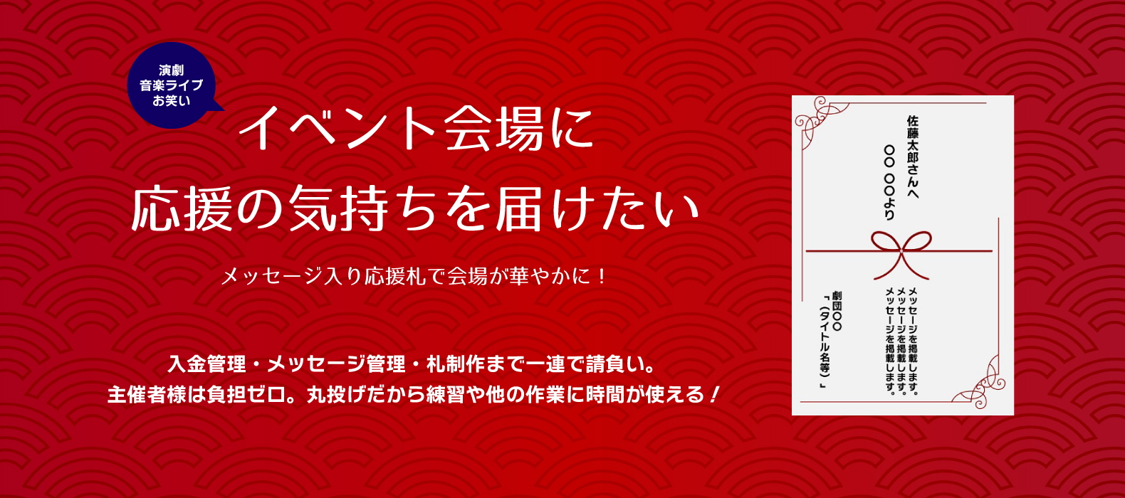 | 文字入れ | 文字のみ可(団体名・公演名も文字のみ可) |